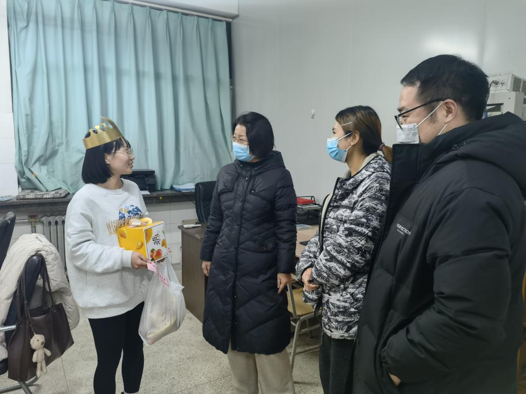疫情发生后,面对仍有300余名学生在校的现状,学院领导班子带头第一时间入校坚守,做好抗疫的组织协调工作,并深入宿舍、实验室走访慰问留校学生。辅导员翟小懿、孟崇、付雅莉以及留校的专任教师戴霞林、王瑞、郭秀秀等人主动向学院请缨,协助做好核酸筛查、学生管理、实验室检查等服务管理工作。学院管理岗教师坚持居家办公做好信息员、宣传员,保证师生的健康状况统计准确、反馈及时,并积极开展好“云上”思政教育。