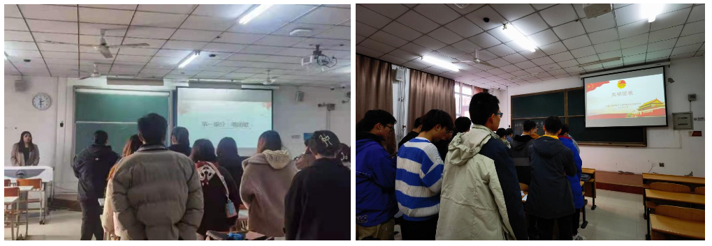 团支部团员重温入团誓词,同学们紧握的右拳郑重宣誓,铿锵的誓言诉说了奋斗的初心,表达着对党、对团的坚决拥护与追随,坚定了同学们把自身发展融入到为祖国繁荣富强而奋斗的历程中去。