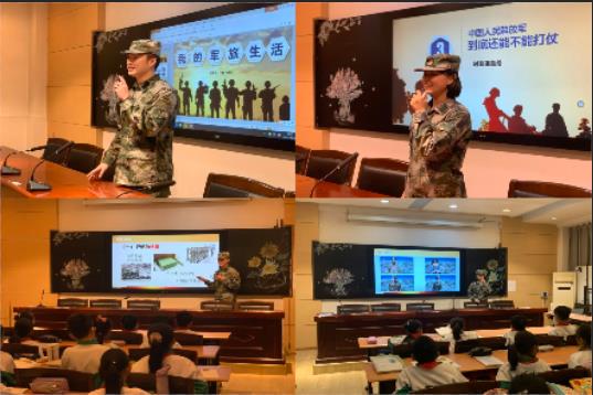 两名退役大学生结合亲身入伍经历以“我的军旅生活”为主题向同学们进行了宣讲,让同学们更加了解军队严明的纪律以及军人崇高的爱国精神。最后,一首《强军战歌》的教唱将整个国防宣讲活动推向了高潮,孩子们在歌声中对国防事业有了更深的认知,纷纷表示要加入中国人民解放军,保家卫国。