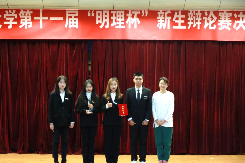 经评审,社会发展学院代表队夺得我校第十一届“明理杯”新生辩论赛冠军,郭政等12名同学获得本届比赛“最佳辩手”称号,华信软件学院的郭锐同学被评为“全程最佳辩手”。