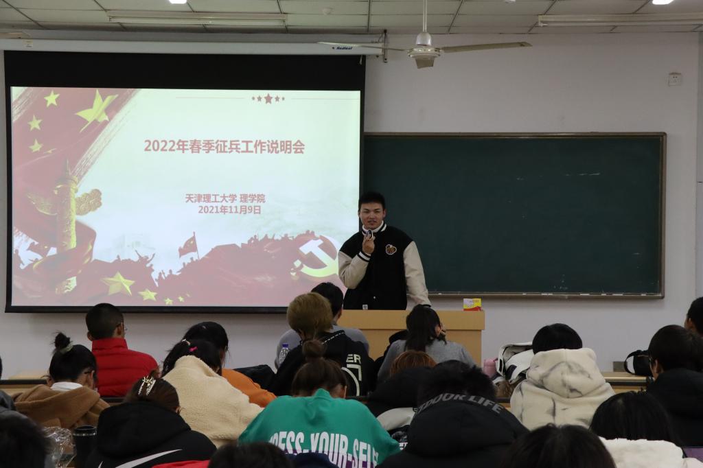 为贯彻落实征兵政策,鼓励在校大学生积极响应党和国家的号召,激发广大适龄青年参军报国热情。11月9日,理学院开展2022年春季征兵宣讲。