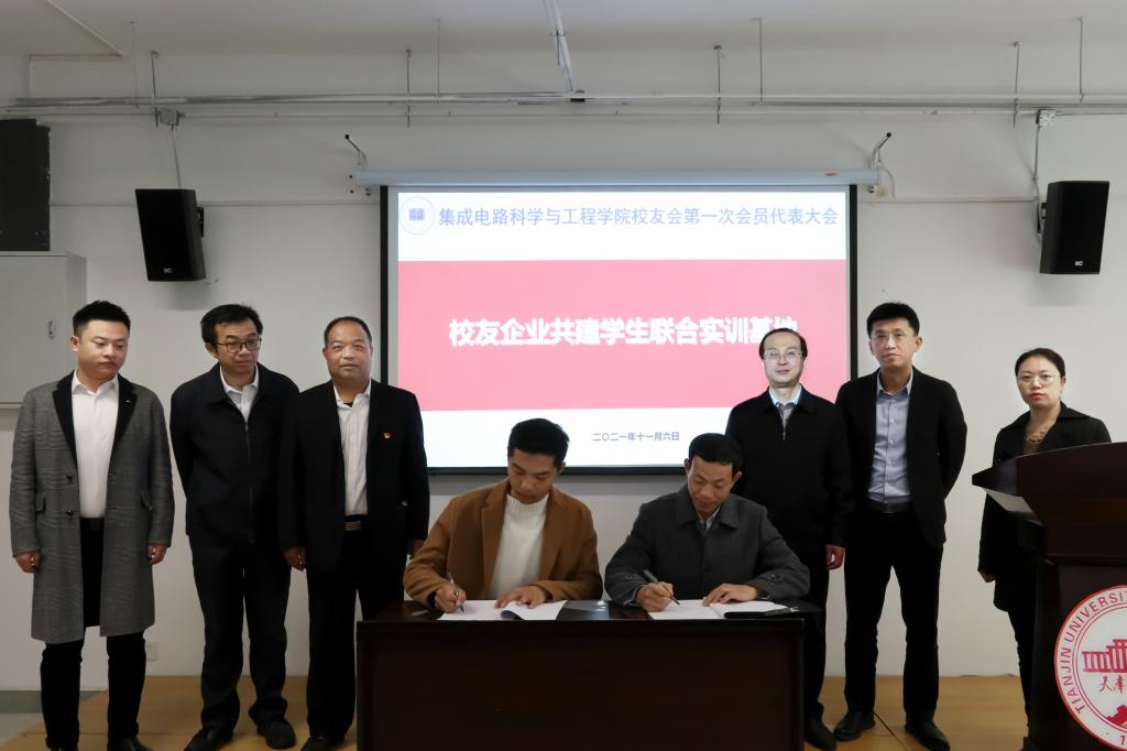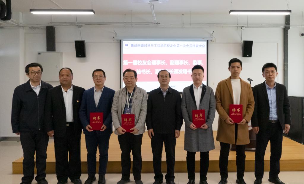 会议表决通过《KY.COM集成电路科学与工程学院校友会章程(试行)》并选举产生集成电路科学与工程学院校友会第一届理事及监事人选名单。校友会第一届理事会选举产生理事长、副理事长、秘书长,提名审议通过副秘书长人选名单。最终,集成电路科学与工程学院学院81级校友,天津市教学名师吕联荣当选集成电路科学与工程学院校友会第一届理事长。会议最后,学校校友办及学院有关负责人向学院校友会主要负责人及骨干成员颁发聘书,并与校友企业签署共建学生联合实训基地协议。