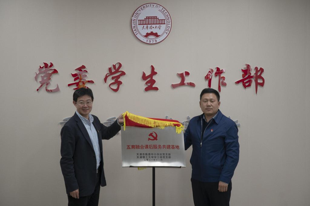 11月4日下午,市教委中小学处党支部与学工部党支部在大学生活动中心A214室举办了支部共建活动暨“五育融合课后服务共建基地”揭牌仪式,两支部党员同志参加。
