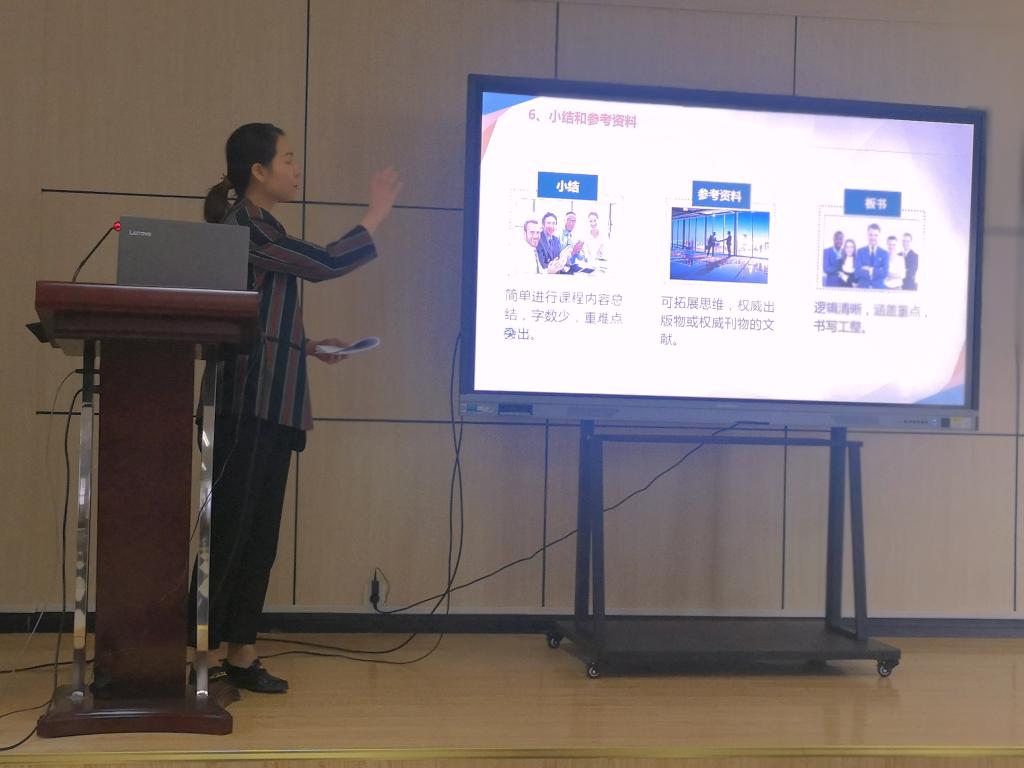 宋云燕老师围绕教学竞赛与常规教学的异同点,理科教学设计要点,理科课堂教学设计要点与技巧,教学反思的意义等几个方面为青年教师进行讲解并分享参赛心得。马馨老师为大家讲解新文科背景下文科课程教学要点,文科课程竞赛设计要点,文科课堂教学技巧以及新文科理念在教学竞赛中的体现。