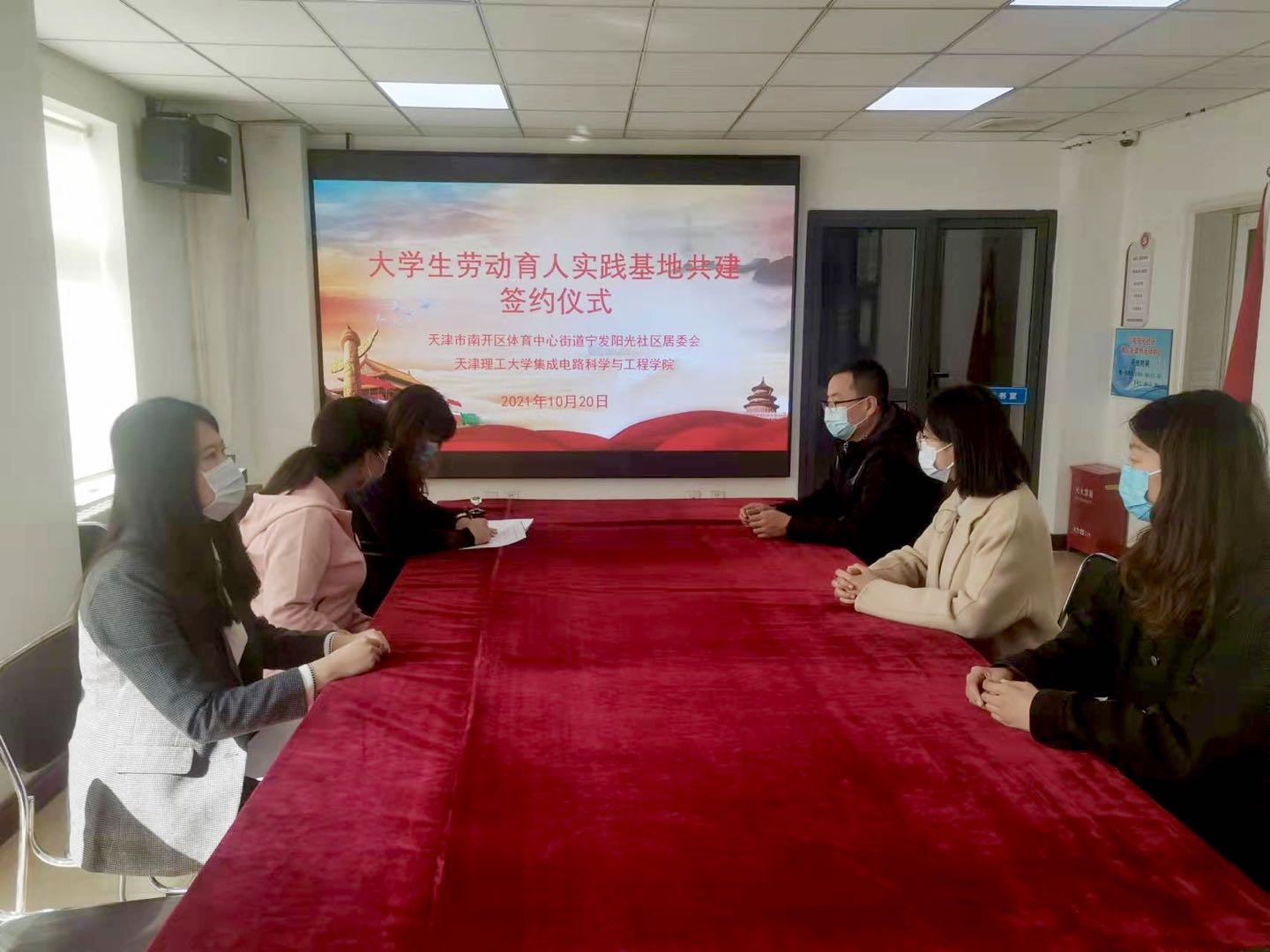 活动中,宁发阳光社区居委会负责同志与学院师生代表开展座谈,就未来合作方向、劳动育人形式等进行交流,希望双方能够充分利用这一平台,在实践中发挥专业优势,不断创新劳动实践形式,切实发挥劳动育人实践平台的育人成效。随后,双方签署共建协议,并为劳动育人实践基地揭牌。