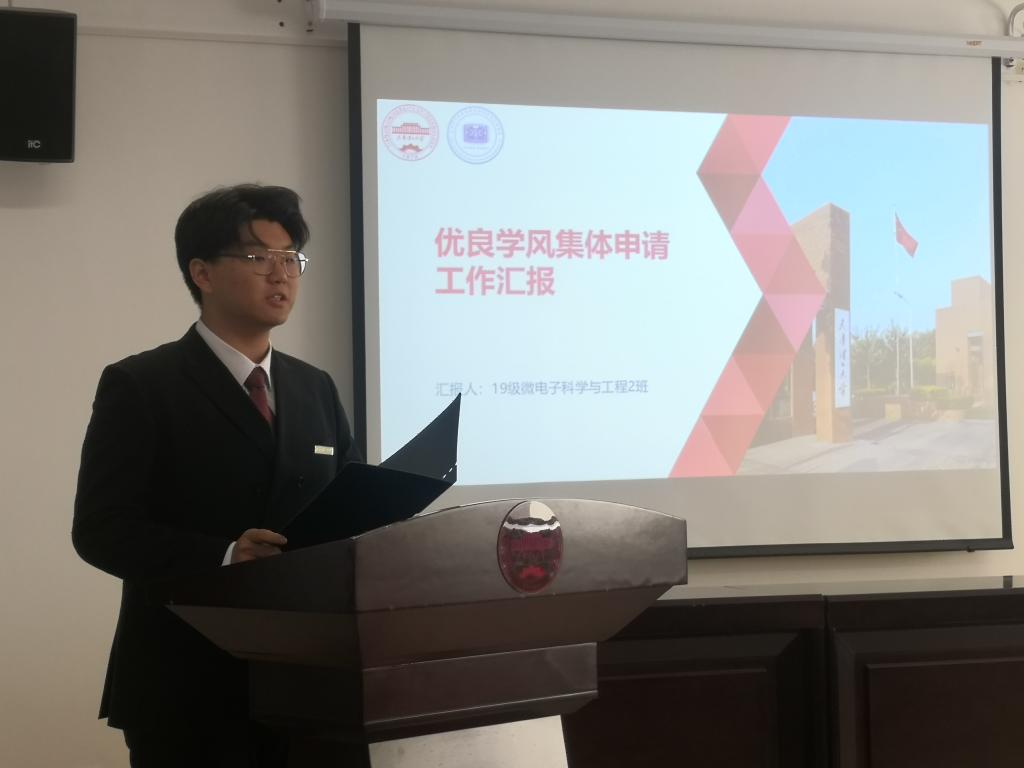 活动开始,主持人向参会师生介绍此次评选条件,各班代表分别从思想政治建设、学风建设、特色活动、曾获荣誉四个方面进行展示,参评班级热情向上,全面展示班级精神风貌和建设成果。优秀集体评选结束后,开展了“理工之星”和明理奖学金院内初审,参评同学从思想品德、技能竞赛、创新创业、社会实践、专业学习、社会工作等方面进行详细的汇报。参评展示后,2021级新生代表表示要向优秀学长学姐榜样看齐,号召同学们养成良好学习习惯,为学校的“清朗学风”建设贡献自己力量,让优秀班级的作用良好发挥。
