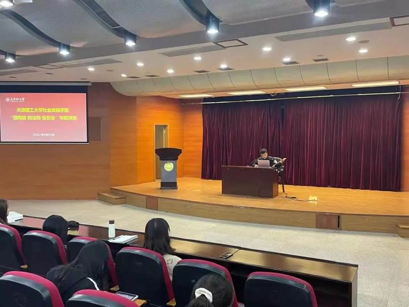 此次讲座中,特邀请到姜浩警官通过对案例进行讲解等方式,向广大师生普及网络安全、个人信息保护、网络安全法律体系、网络谣言识辨等安全知识,号召大家在日常学习、生活中严守网络安全防线,文明上网,树立“网络安全人人有责”的意识。