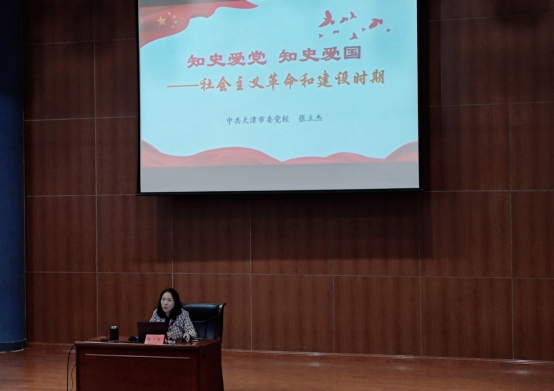 张教授从历史时期的划分、重大历史事件的解读、深刻认识经济体制改革、正确认识社会主义改造与社会主义改革的关系、正确把握改革开放前后两个历史时期的性质及相互关系、个人心得体会等方面带领学员学习了我国社会主义革命和建设时期历史,深刻领会我们党领导人民完成社会主义革命,确立社会主义基本制度,推进社会主义建设,实现中华民族由不断衰落到根本扭转命运、持续走向繁荣富强的伟大飞跃。张教授强调,要树立正确党史观,把党史上的重大事件、重要会议、重要人物放在所处时代和社会历史条件下去认识,深入理解和把握党的百年历史就是为了求得民族独立和人民解放、实现国家富强和人民幸福不断地探索、追求、奋斗的历史,是饱含曲折与艰辛、收获成功与辉煌的历史,是引领中华民族迎来了从站起来、富起来到强起来伟大飞跃的历史,也是党自身从小到大、由弱到强、不断发展壮大的历史,要从党史学习中总结历史经验、把握历史规律,增强开拓前进的勇气和力量。