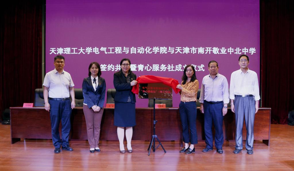 为进一步深入推进新时代大中小思政一体化,贯彻落实立德树人根本任务,厚植爱国主义情怀,切实形成大中小教育合力,电气工程与自动化学院于9月28日与天津市南开敬业中北中学举办签约共建暨青心服务社成立仪式。天津市南开敬业中北中学、KY.COM党委学工部、电气工程与自动化学院有关负责人出席了共建仪式。
