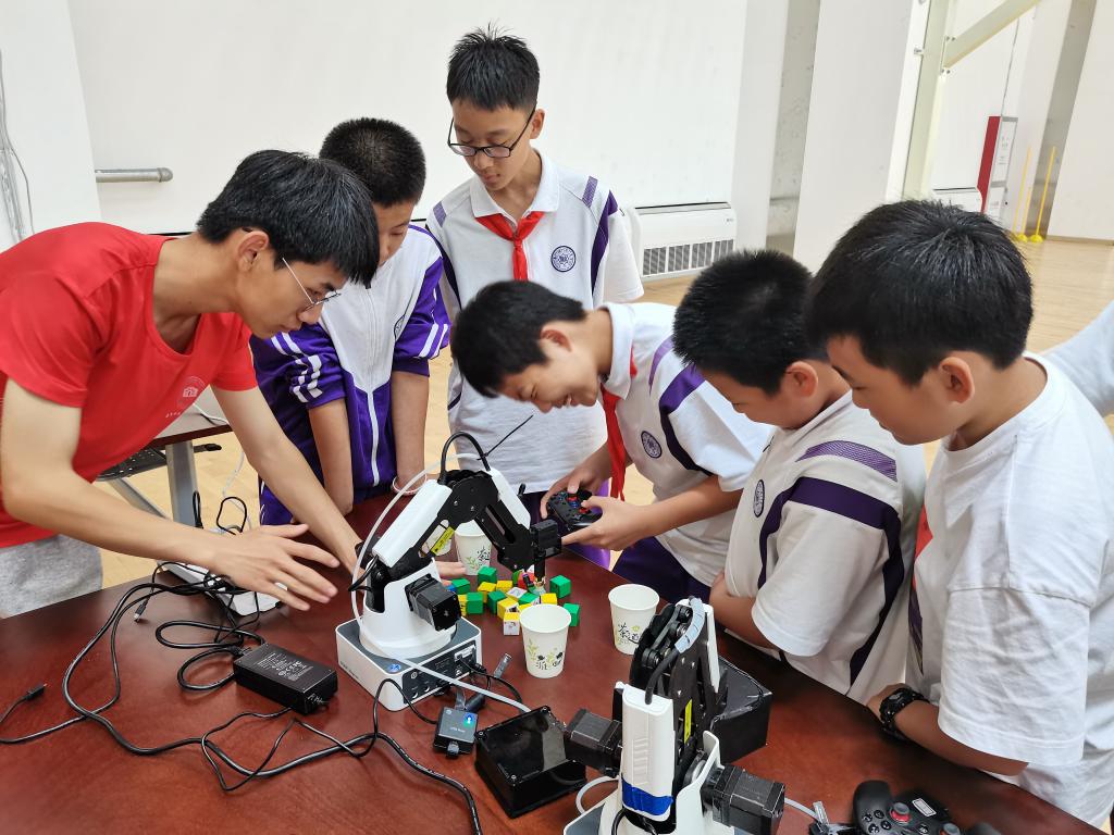 共建仪式结束后,电气工程与自动化学院学生赵婧涵开展红色故事宣讲,分享“九河下梢看津城 百年历程跟党走”海河桥梁历史文化调研团寻访红色印迹成果。人工智能协会的同学们向中学生展示机械臂搬运、智能车寻迹行进等科技成果,寓教于乐,互动热烈。