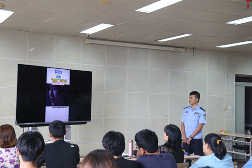 讲座中,姜浩警官以真实案例解读诈骗手段。他号召全体学生干部要以身作则,树立担当意识,积极将防范电信诈骗意识传达到位,共同建立全员防范电信诈骗屏障,坚决遏制电信诈骗案件再次发生。同时,现场号召全员下载“云剑反炸”APP,坚决从意识上高度重视,从行为上坚决抵制,树牢防范电信诈骗意识,创新防范电信诈骗手段,进而确保全员财产安全,生命安全。