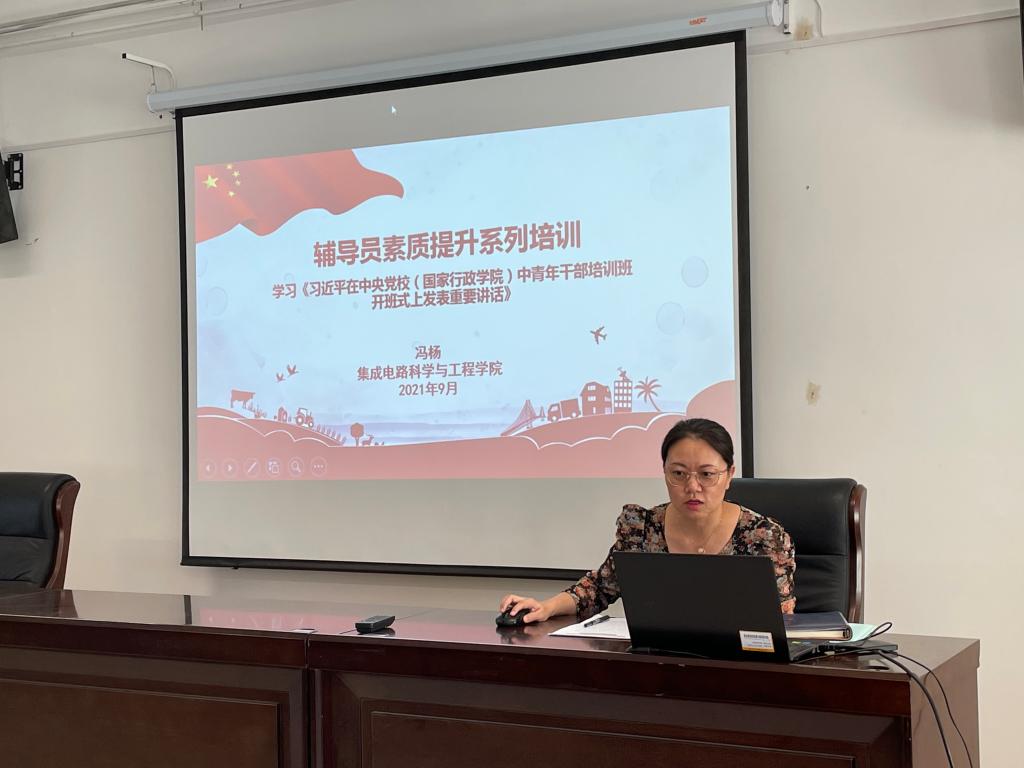 为提升学院辅导员素质能力,做好学生思想政治教育工作,强化应对突发事件处理技能,9月22日,集成电路科学与工程学院组织开展2021-2022学年第一期辅导员素质能力提升培训,学院全体辅导员老师参加。