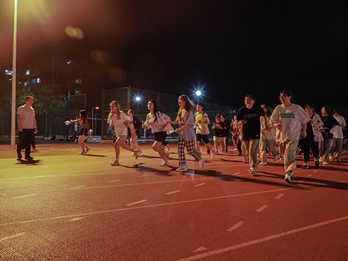 活动中,同学们佩戴荧光手环,沿着环型跑道跑出青春,跑出活力,向着同一个目标努力奋进。凉风习习的夜色中,同学们挥洒汗水,挥洒热情,他们充满活力的身姿成为校园里一道靓丽的美景,互相鼓励的加油声响彻操场。冲向终点后,同学们高举手中的荧光棒,齐呼“我爱天理,强国有我”,对祖国和学校的热爱之情溢于言表、振奋人心,活动也在欢声笑语中圆满结束。