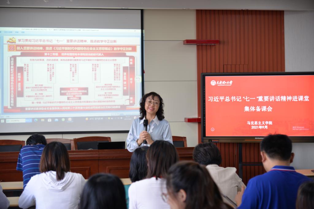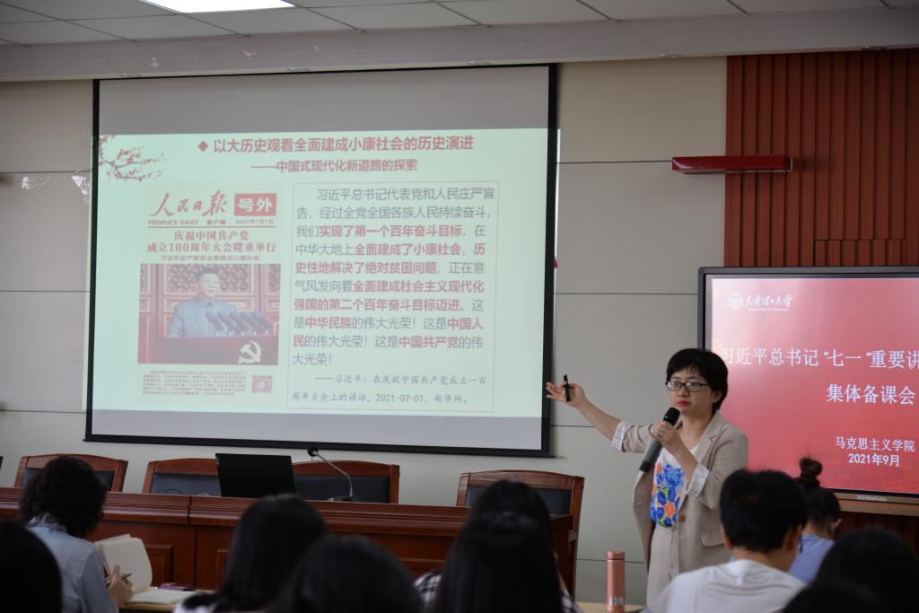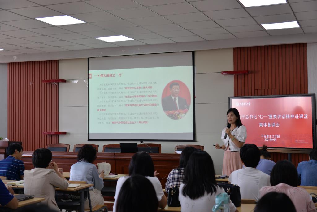 为深入学习贯彻习近平总书记“七一”重要讲话精神,贯彻落实习近平总书记关于教育的重要论述,办好新时代思想政治理论课,推进以习近平新时代中国特色社会主义思想为核心内容的思政课课程群建设,9月8日,马克思主义学院召开习近平总书记“七一”重要讲话精神进课堂集体备课会。