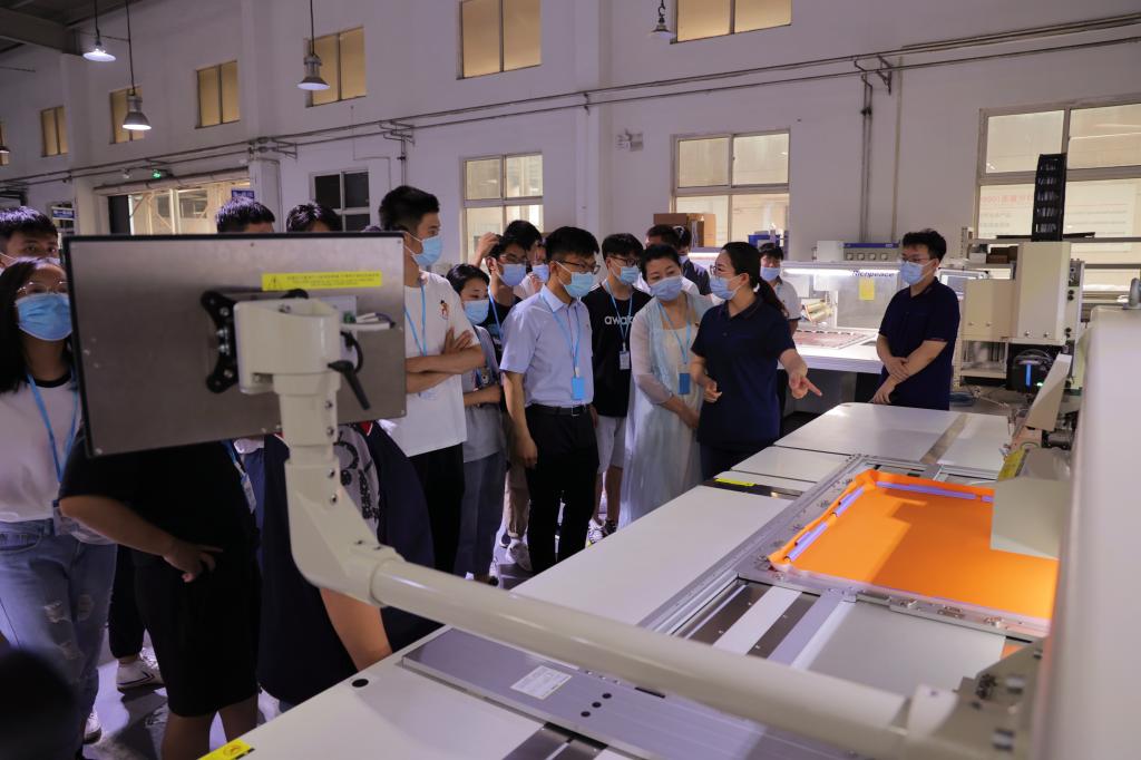 在座谈中,富怡负责人详细介绍了公司的发展战略和当前发展情况,在设备自动化、管理信息化等智能制造领域取得的成绩给大家留下了深刻印象。学院负责人表示,希望校企双方能够进一步发挥各自优势,在项目研究、课程改革和共建实训基地等协同育人工作领域开展卓有成效的合作。随后,在富怡负责人的带领下,师生们参观了公司的绣花制作、口罩制作等厂区,让师生们感受到“智能化+绣花”的魅力,体验到科技发展让传统文化产品焕发出昂扬生机与活力。