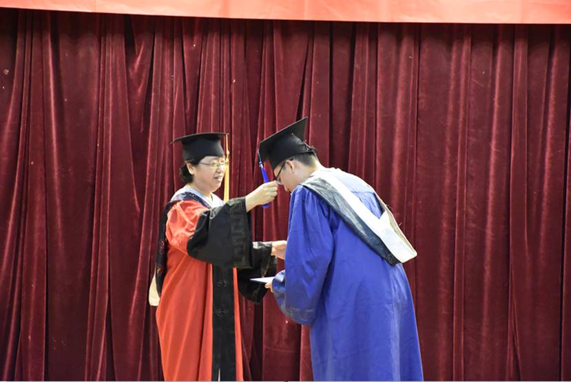 典礼在庄严雄壮的国歌声中拉开帷幕。临别之际,千言万语,硕士生导师何敬民老师、沈礼老师给同学们送出祝福,研究生代表吴芳玲同学、何雨航同学表达了对母校和老师们的感恩之情。