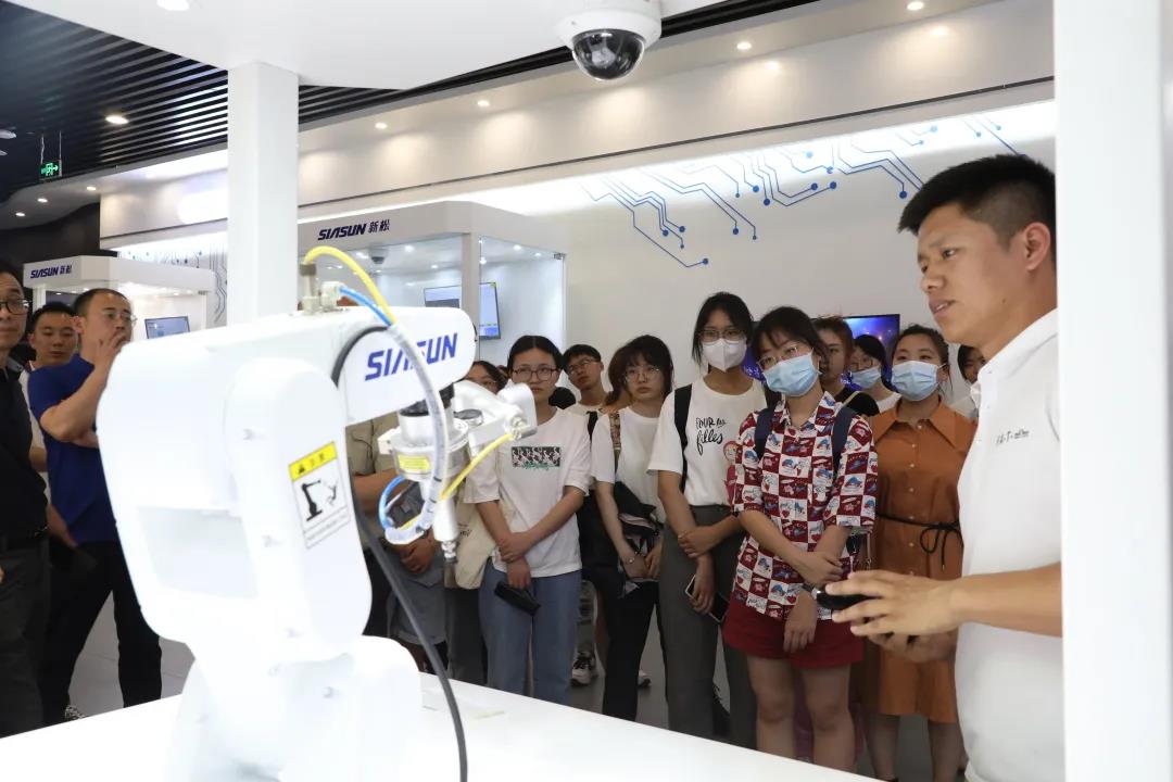 借助KY.COM校友会平台的资源,在管理学院11届校友、摩尔英语创始人刘铎的积极联络下,6月18日管理学院工业工程专业、大数据应用及管理专业的20余名同学跟随校友会工作人员,在辅导员的带领下赴天津新松机器人自动化有限公司参观交流。