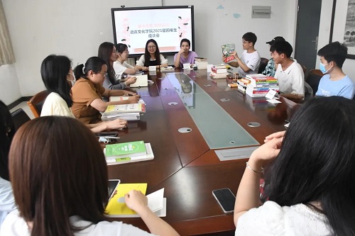 为进一步做好资助育人相关工作,加强学院与家庭经济困难毕业生的沟通交流,更好地了解家庭经济困难毕业生的思想、生活情况及未来发展规划,近日,语言文化学院召开“奋斗青春 筑梦远行”2021届困难生座谈会,学院党委副书记关鑫、辅导员郭晶莹出席会议。