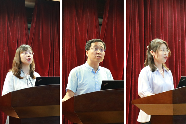 天津市第十五届高校青年教师教学竞赛理科组一等奖(第一名)获得者宋云燕副教授以“‘青教赛’经验分享”为题,从备赛、教学设计、课堂教学、教学反思等四个方面来讲授如何以赛促教,不断提升教师的教学理念、教学处理能力和教学效果。天津市“五一”劳动奖章、第四届全国高校数学微课程教学设计竞赛全国一等奖、天津市第十四届高校青年教师教学竞赛理科组特等奖获得者,天津市优秀教师赵瑞老师以“概率论与数理统计教学设计的体会与思考”为题,从知识引入、知识构建、知识理解、知识应用等四个方面讲授教学设计的各项环节。天津市师德先进个人、天津市教育系统劳动竞赛“示范岗”获得者徐春明副教授以“学生科技赛事指导”为题,从竞赛发展与参赛流程、我校参赛践行等方面介绍了如何指导学生在竞赛中获得优异成绩,同时倡导各位教师学习贯彻新时代教师职业行为十项准则,加强师德师风建设,争做政治强、情怀深、思维新、视野广、自律严、人格正的“四有”好老师。