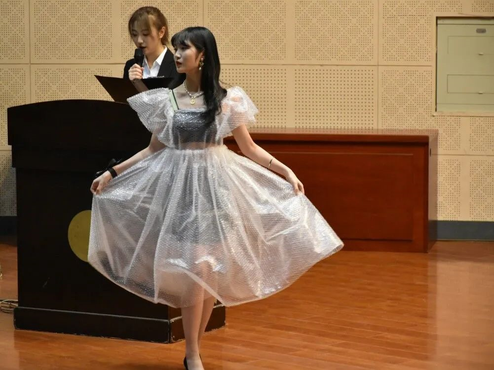 活动开始时,小视频“环安文化节”带领同学们回顾了“3.0宿舍评选”、“党史知识竞赛”等活动的精彩瞬间,随后,话剧《听,海哭的声音》围绕海洋环保展开,充分调动了现场气氛。活动中,12支队伍依次穿戴上由手边的报纸,塑料袋,水瓶等废弃材料精心设计和制作的环保晚礼服,进行了精彩的走秀和丰富独特的讲解,展示了同学们良好的环保意识和实践创新能力,表达了同学们对绿色低碳生活的坚定决心。最后,由环安学子自行拍摄及制作的视频《环保“动”起来》的播放,让同学们对环保有了更深刻的认识和理解,激励同学们积极主动参与到环保活动中去,用实际行动践行低碳环保的生活理念。