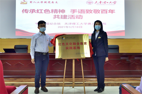 共建活动上,平津战役纪念馆与聋人工学院签订“红色文化融合育人实践基地”共建协议书,就参观纪念馆、举行研讨会、志愿服务、开展爱国主义教育、红色育人文化教育、理想信念教育等方面达成合作意向。随后,代表双方为共建“红色文化融合育人基地”揭牌。