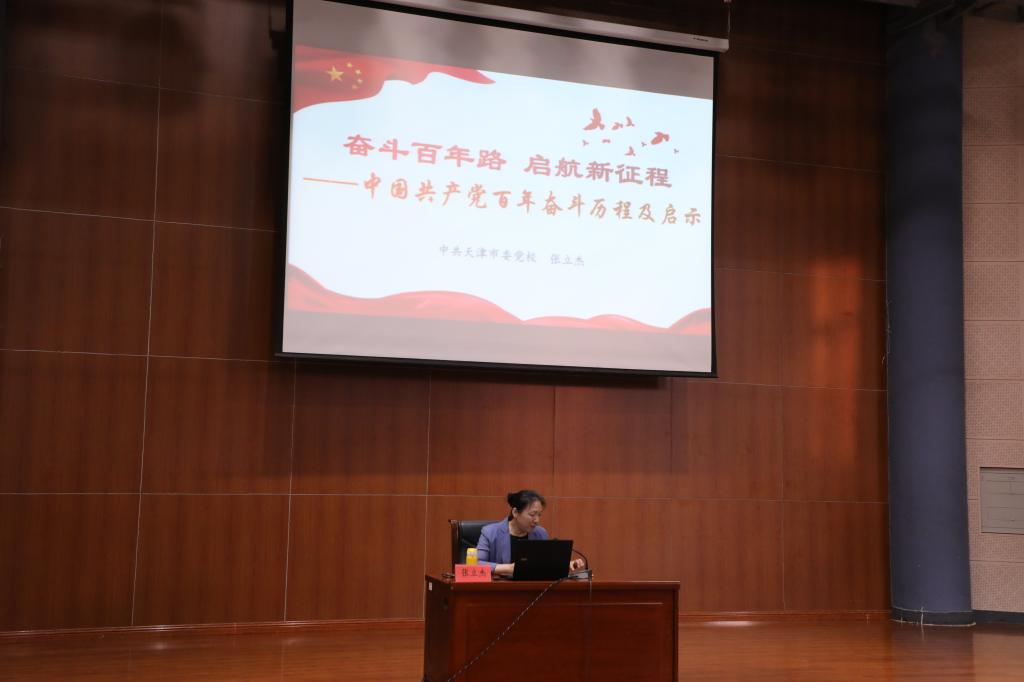 张教授从树立大历史观和抓好历史中心思想、掌握历史主线索两个方面,结合具体事例,以从中国为什么产生了中国共产党,中国共产党成立之后给中国带来了什么样的变化、实现了什么样的伟大飞跃,以及百年党史带来的启示等方面内容为重点,引导学生在历史学习中分清主流和支流、本质和非本质,从更高站位和更加科学的眼光看待历史中的重要事件、重要人物以及各个历史阶段,公正、客观、全面的阐释历史事实。讲座结束后,大家纷纷表示,通过张教授的生动讲述,在党的百年奋斗历史中接受党性洗礼、感悟初心使命、凝聚奋进力量,以后会持续以崇敬之情、敬畏之心认真学习党的历史,从中汲取智慧和力量。