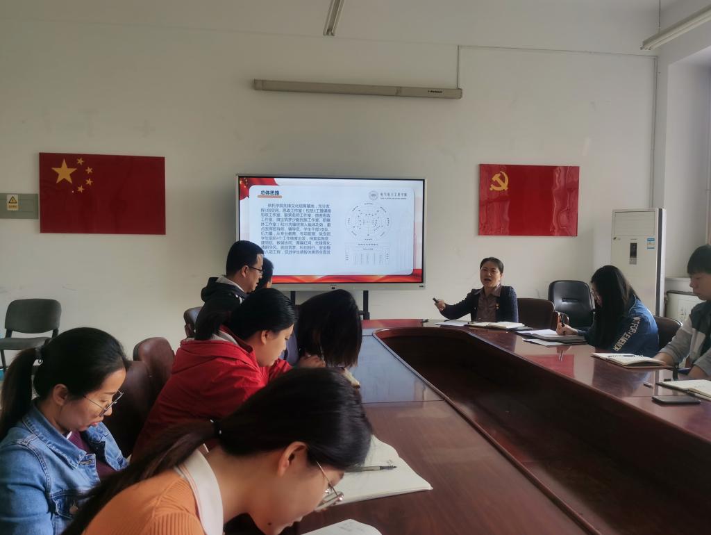 培训会上,学院党委副书记冯杨作了“推进一体三翼 实施八项工程 全力构建三全育人新格局”专题工作分享。冯杨老师结合“三全六新”工作要求,基于学院基数大、人员多、突发频、工科强的实际特点,以立德树人为根本任务,以提升工作系统化和科学化管理水平为目标,围绕学院学生思想政治教育工作“13348”总体思路,详细阐述了依托学院先锋文化培育基地,充分发挥E创空间、思政工作室和3E先锋班育人载体功效,凝结班导师、辅导员、学生干部3支队伍力量,从专业教育、专项管理、党支部、学生组织4个维度出发,探索实施党建领航、教辅协同、青媒红网、先锋育化、清朗学风、就创筑梦、科创践行、安全稳健八项工程,促进学生德智体美劳全面发展,构建三全育人新格局的工作理念。培训会后各辅导员老师围绕分享内容展开充分讨论,为切实保证各项工作部署落实落地凝聚思想共识。