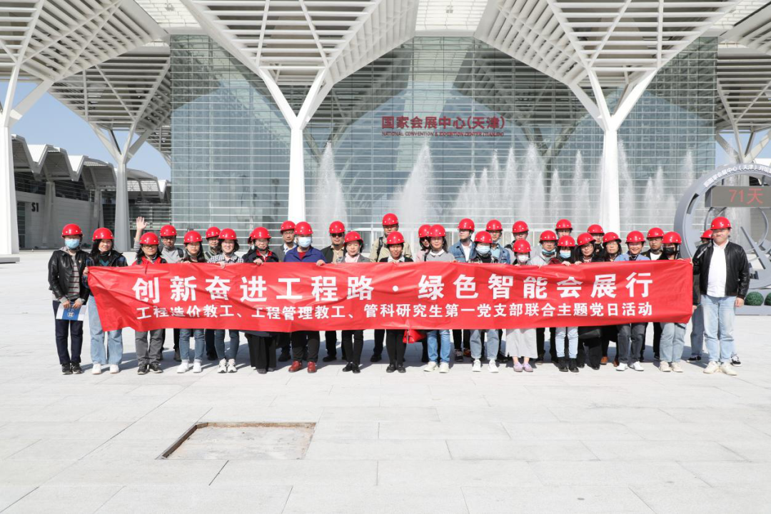 近日,管理学院工程造价教工党支部、工程管理教工党支部与管科研究生第一党支部师生赴国家会展中心(天津)联合组织开展主题党日活动,深化党史学习教育,探索中心工作与党建工作深度融合方法,以高质量党建引领专业快速发展,推动一流本科专业建设工作。