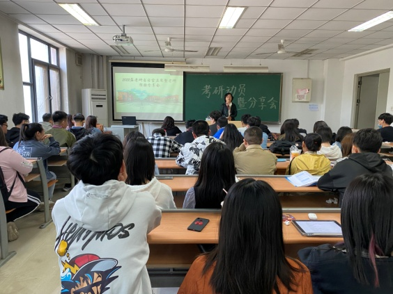 考研动员会后,2021届考研成功的学生代表分别从备考的不同时间节点安排、考研复习资料的选择以及备考心理调适等多个方面,向同学们介绍了经验做法,也预祝2022届的学弟学妹们能够乘风破浪,取得佳绩。