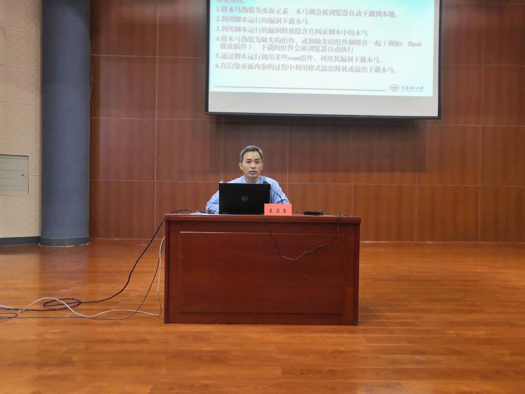 在讲座过程中,王法玉主任列举国内外热点网络安全事件,深入浅出的为同学们指出了网络安全在日常生活中的重要性。同时也传授了学生们很多种提高网络安全意识、防范个人信息泄露等方面的方法和手段。最后回归专业特点,教育学生们作为计算机专业的学生,要进一步提高自己的专业学习能力和动手能力,告诫学生们在网络上要擦亮双眼,提高警惕,培养良好的使用网络习惯。