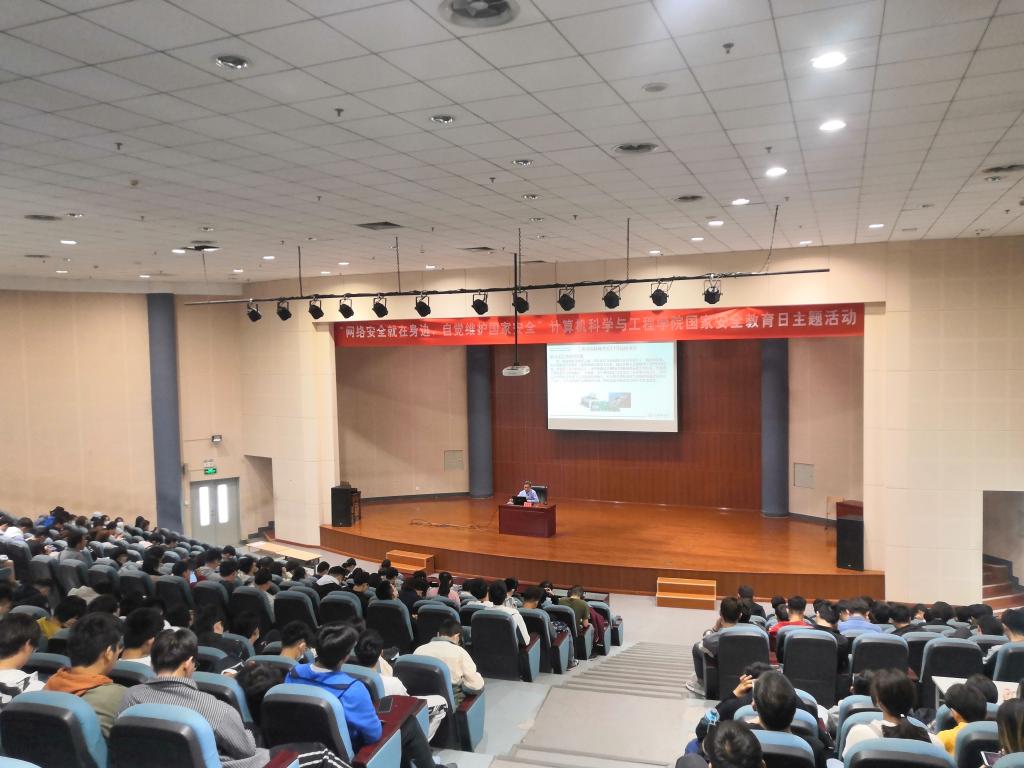 为了迎接4月15日第六个全民国家安全教育日,推动国家安全宣传教育工作深入开展,增强学院广大师生的国家安全意识,计算机科学与工程学院结合学院专业、学科特色,开展了主题为“网络安全就在身边,自觉维护国家安全”国家安全教育日活动,邀请到了天津市网络信息化专家、KY.COM网信办主任王法玉老师为同学们带来了一场网络安全讲座,学院主要领导和辅导员、各年级、专业学生代表共300余人参与了此次活动。