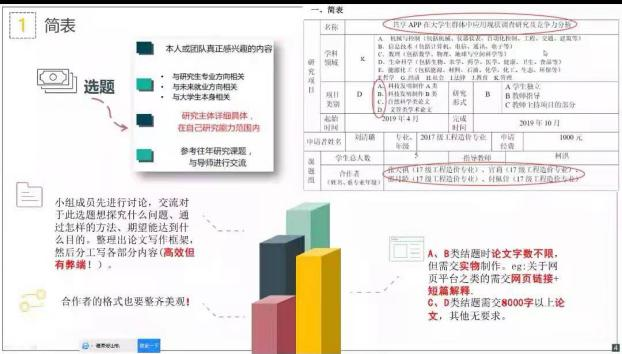 刘清璐学姐从简表、立项依据、研究方案和其他这四个方面继续为大家分享自己的独到见解。首先讲到简表的选题和项目类别,强调表格格式的美观度。其次,在立项依据方面,学姐主要提到要写清楚研究问题、研究目的和立项依据的结构形式。随后,在研究方案方面,学姐指出表格要有图名表名,并且要注意研究目的和研究结论的区别,掌握好流程图的使用。最后,学姐还补充了许多研究方法的结合,以及申报书的版面问题。