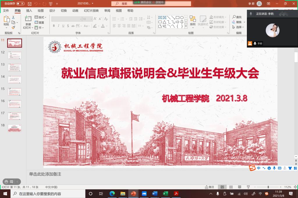 3月8日,机械工程学院面向全体2021届本科毕业生召开线上就业推动会,调研学生求职就业需求,启动春季招聘,同时做好毕业季各项服务说明,五百余名毕业年级学生参加了会议。