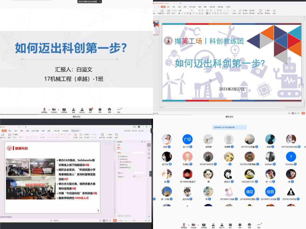 本次活动邀请了明理奖学金获得者苏鑫,科协前会长李蒙蒙,保研上海大学包天旭,大创、小挑、论文、专利全面开花白溢文,保研浙江大学杨思豪主讲。各位学长分别针对研究课题范围,怎样确定项目课题,各类大赛比赛要点以及如何撰写论文专利等方面进行详细说明。随后,学长们针对同学们的所提问题,耐心的为大家进行解答,勉励同学们要从现在打好基础,认真学习专业学科知识,保持勤学奋进的学习态度。最后学生工作教师在会上表示,大学生科技创新活动是实践锻炼重要平台,需要最大程度调动广大学生的积极性,提高大学生参与科研、参与创新的意识,让更多的学生走进“科研”、走进“创新”,体会到科技创新活动的乐趣,提高学生的自信心。