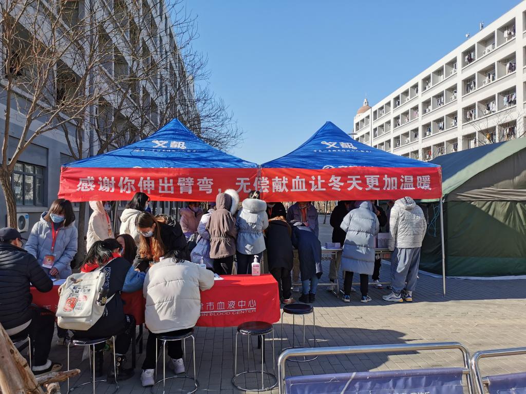 2020年新冠疫情暴发以来,全国各地血库相继告急,我校1400余名学生在全国各地积极参与无偿献血工作,在国家需要的时候义无反顾的伸出手臂、勇献热血,为疫情防控和病患救治贡献了力量。多年来,学校积极组织无偿献血工作,联合天津市血液中心,每周定期开展“无偿献血进校园”活动,自2015年至今我校师生在校内参与无偿献血超过1万人次,献血总量超百万毫升,学校连续三次获得“全国无偿献血促进奖”,在校园中弘扬了无私奉献的大爱精神,培育了“我为人人,人人为我”的良好社会风尚,展现了新时代中国青年的奉献精神和爱国情怀。