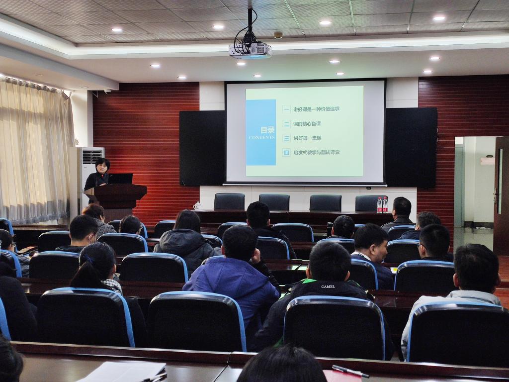 戴敏教授从教学的价值追求、课前精心备课、讲好每一堂课和启发式教学与翻转课堂四个方面结合自身的教学感受、经验与思考进行了交流。教师要坚持以学生为中心,以教学为根本,认为讲好课是教师的看家本事,履行岗位职责就是要追求自己的课堂价值。讲好一门课要“备好课”、“开好头”和“结好尾”。从宏观到细节,要讲得下、讲得好、讲得活。课堂要语言准确、重点突出、逻辑性强,教会学生解决问题的思路。戴敏教授与学院教师分享了自己上课的课堂管理经验,如何做到对学生严管厚爱。此外,戴敏教授介绍了关于启发式教学与翻转课堂这一新的教学理念与模式,从什么是翻转课堂,翻转课堂成功的关键与有关老师进行了交流。