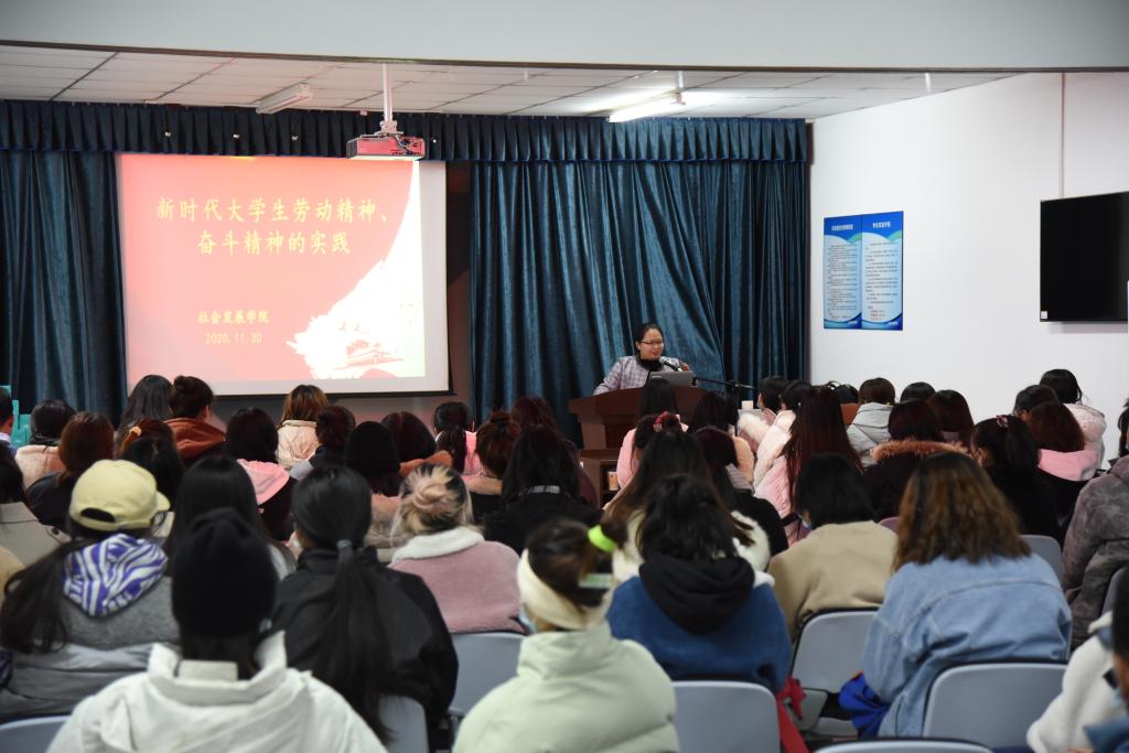 为进一步落实中共中央、国务院《关于全面加强新时代大中小学劳动教育的意见》,坚持立德树人根本任务,大力弘扬劳动精神,培养大学生艰苦奋斗精神,日前,社会发展学院举办“新时代大学生劳动精神、奋斗精神的实践”主题活动,学院党政负责人、学生工作教师出席,80余名学生积极参加。
