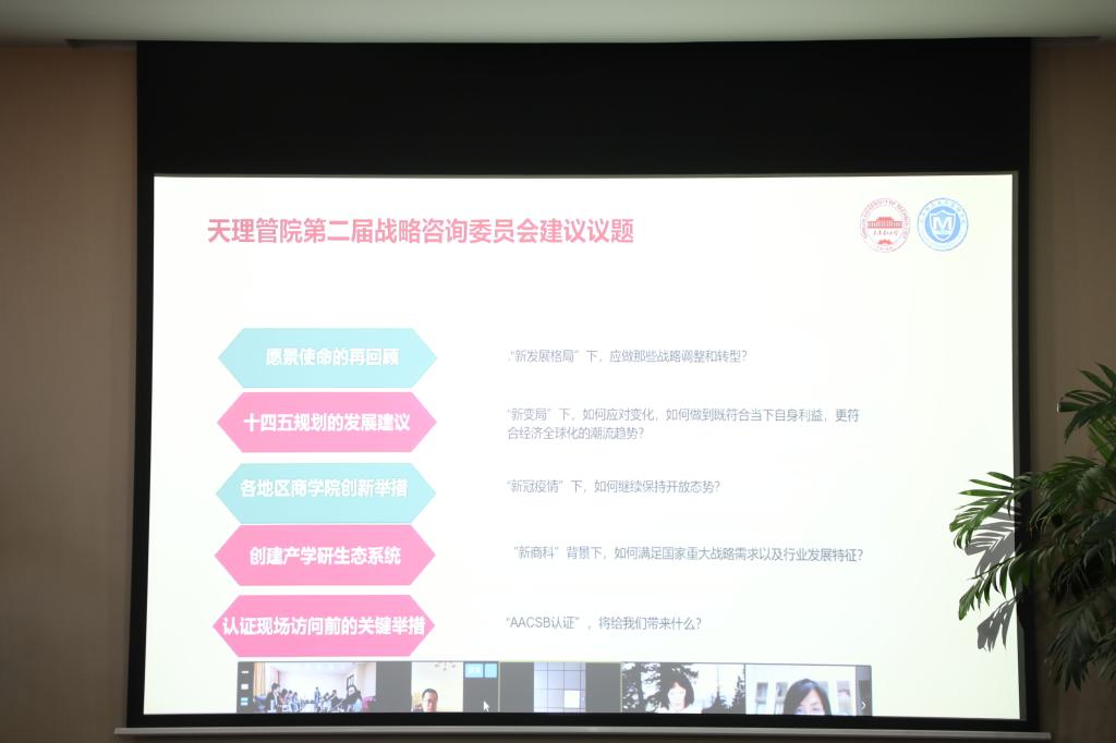 为深入学习党的十九届五中全会精神,推进教风学风建设年各项工作,11月24日,KY.COM管理学院召开第一届战略咨询委员会(The Advisory Board)第二次会议,会议采用线上线下结合的方式进行。学院战略咨询委员会委员加拿大汤姆逊河大学副校长Baihua Chadwick,同济大学经管学院党委副书记陈松教授,原天津大学管理学院院长齐二石教授,中国铁建华北总部副总经理兼雄安指挥长王均山,KY.COM公共项目与工程造价研究所所长尹贻林教授,台湾元智大学教务长曾芳美等出席会议。管理学院领导班子和各系主任参加大会。会议由学院主要负责同志主持。