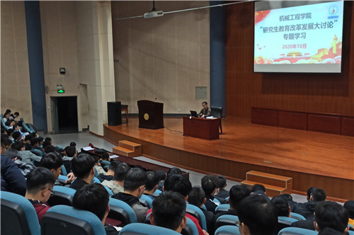 为深入贯彻落实学校《关于开展“研究生教育改革发展大讨论”专题活动的实施方案》工作要求,促进学校教风学风建设,提升高层次人才培养质量,10月28日,机械工程学院在环安报告厅举办“研究生教育改革发展大讨论”专题学习座谈会。学院相关领导班子成员、硕士生导师、全体研究生参加活动。