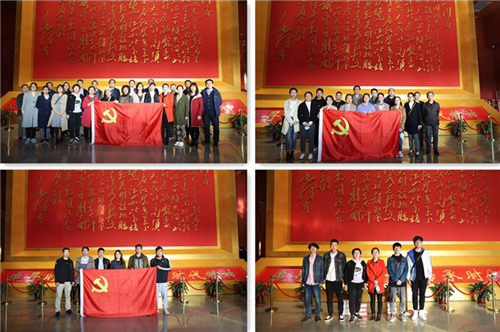 “我志愿加入中国共产党......”,面对鲜红的党旗,大家高举右拳,字字铿锵。在领誓同志响亮声音的带领下,大家再次重温入党誓词,又一次忆起了当年入党的初心。在学院领导的带领下,大家一起向主席献花,虔诚的彰显了我们继承遗志弘扬精神的坚定信念。