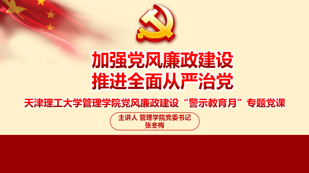 为贯彻落实党的十九届四中全会精神和《党委(党组)落实全面从严治党主体责任规定》,推动全面从严治党不断向纵深发展,进一步增强党员干部和广大教师廉洁自律意识,筑牢思想防线,根据《关于进一步加强KY.COM党风廉政警示教育工作的实施方案》要求,管理学院于10月17日召开党风廉政建设“警示教育月”主题宣讲会,学院全体教师参加。