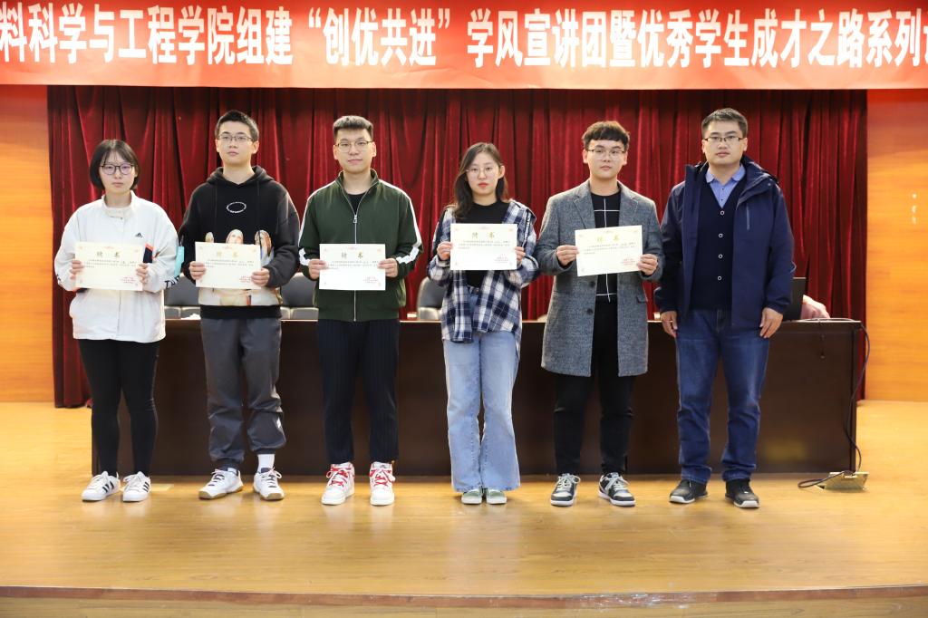 会议伊始,2018级材型3班“创优共进”学风宣讲团进行了自我介绍,材料学院学生工作负责人为宣讲团成员颁发聘书并宣布“创优共进”学风宣讲团正式成立,接下来三名宣讲团成员分别进行了个人学习经验宣讲、优良学风班建设宣讲以及科技创新宣讲,整场讲座内容贴近学生实际、满足学生需求,同学们纷纷表示讲座内容很实在,正是他们想要了解的内容,今后他们也会“向优看齐”,努力提升自己。