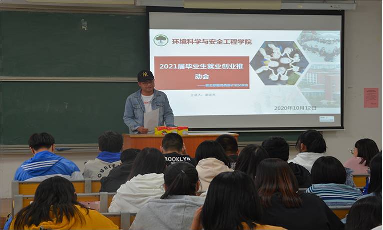 为增加同学们对就业情况的了解,解决同学们在就业方向上的困惑,提升同学们的创业意识和能力。10月12日,环境科学与安全工程学院举办优秀校友就业创业推动会讲座。西部计划志愿者、环安学院优秀校友谢宏兴担任主讲,三十余名环安学子参与此次讲座。