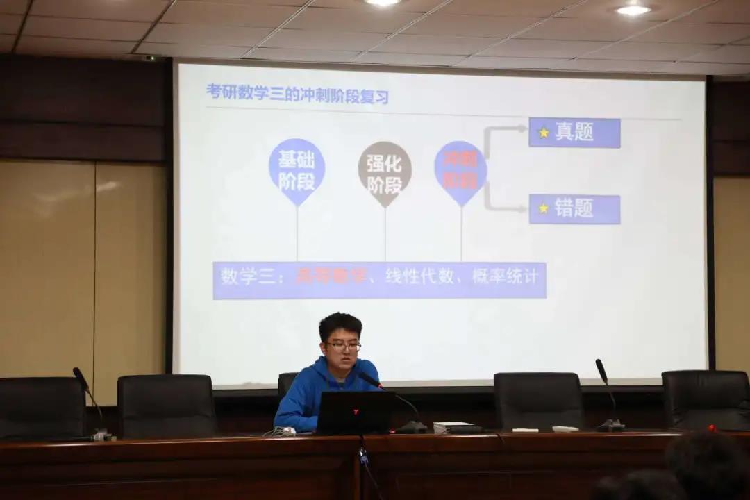 10月10日,管理学院在二楼报告厅举行了2021级考研冲刺交流大会。研究生会助研部邀请的2020级4名研究生结合自身备考经历,详细为考研冲刺的同学们做考前的战术分析、心态调整与问题解答。