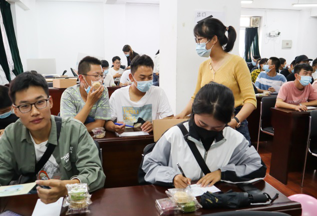 20级的新生代表赵伟康和巩世豪同学也分享了自己对大学的认识与规划,立目标、勤执行、严律己,“天行健,君子以自强不息”,他们希望20级新生们都可以逐梦天理,找到自己的目标,不断进步。随后,学院组织在座新生观看励志视频,发放了印有KY.COM文化标识的月饼,并引导大家写下了自己对大学生活的展望。最后,辅导员老师对新生提出了“不逐一时利,追寻长远梦”的建议,希望新生能在新的平舞台上绽放自己的光彩,成就不凡人生。