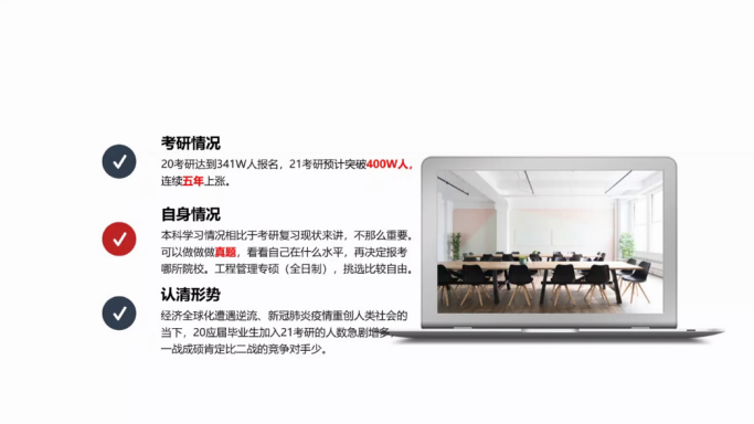 活动中,陈达学长首先就疫情原因分析了就业形势更加严峻,2021年考研的人数急剧增多,尤其是对于成绩一般的同学,读研是提升能力的一个好机会,也是做好就业准备的缓冲期;纪媛媛学姐以自己的切身经历向同学们讲述了考研的宝贵经验及在备考期间应该注意的问题,包括各科的复习方法、心态的调整、计划的建立、作息时间的安排等;最后,李龙龙学长就为什么考研以及如何考研等问题做了详细讲解。活动结束后,三位学长学姐与同学们进行了热烈的互动,大家纷纷表示研究生备考是一个漫长的路程,应在认清自我基础上找准目标,早做准备。