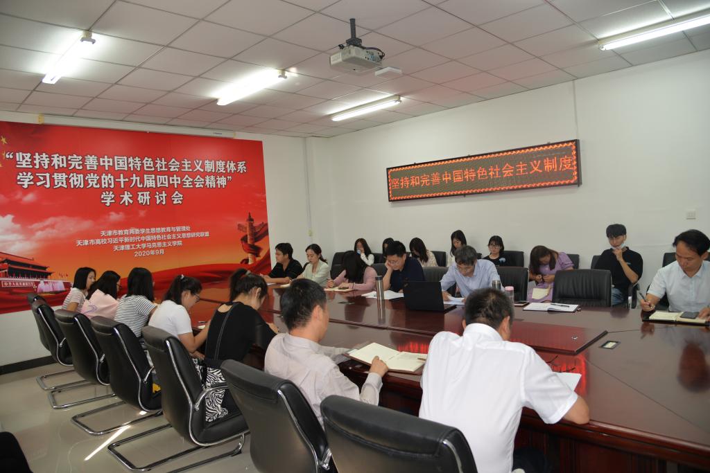 为了全面准确理解、认真贯彻落实党的十九届四中全会精神,KY.COM马克思主义学院于9月20日上午在学院412会议室举行学术研讨会。本次研讨会以“坚持和完善中国特色社会主义制度体系——学习贯彻党的十九届四中全会精神”为主题,邀请到南开大学马克思主义学院院长刘凤义教授、山西师范大学马克思主义学院院长贾绘泽教授和武汉大学马克思主义学院李楠教授做主题发言。马克思主义学院领导和全院师生通过线上线下的方式参与会议研讨。研讨会由马克思主义学院副院长乔惠波主持。