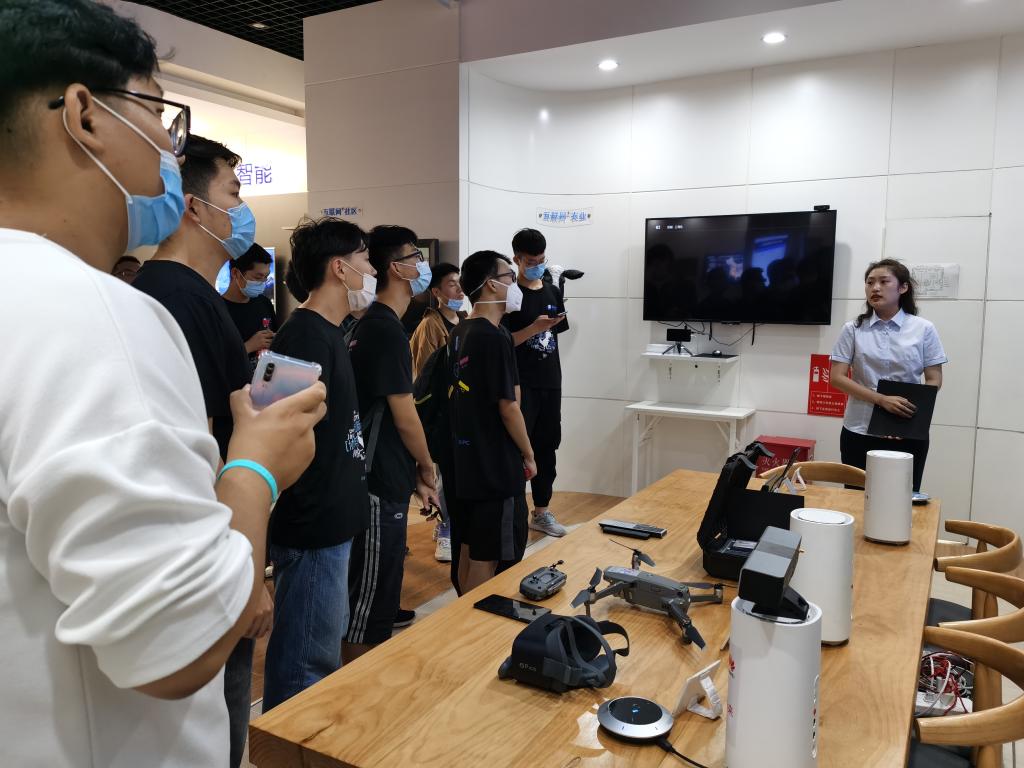 在天翼云5G科技展示中心,讲解员介绍5G互联网技术在实际的具体应用,包括运用在数据上的云计算,中国电信与军队监控,政治管理,社会服务,信息化服务方面的相融合。讲解后,同学们自由体验互联网产品,让同学们切实体验科技发展给社会、生产和生活各方位带来的深刻改变。
