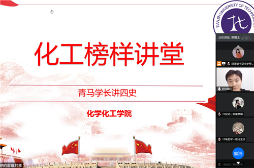 为加强“四史”学习教育,坚定理想信念,提高青年学子的使命责任感,9月10日晚,化学化工学院利用腾讯会议平台举办了第二期“化工榜样”讲堂,邀请了我校优秀校友、天津市第一期“青马工程”学员陈佳星,做以“以知促行,做青春追梦人”为主题的团学骨干培训,学院团学骨干、积极分子、入团申请人共58人参加了本次活动。