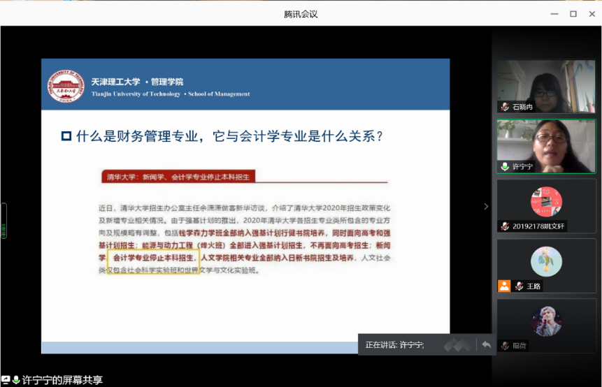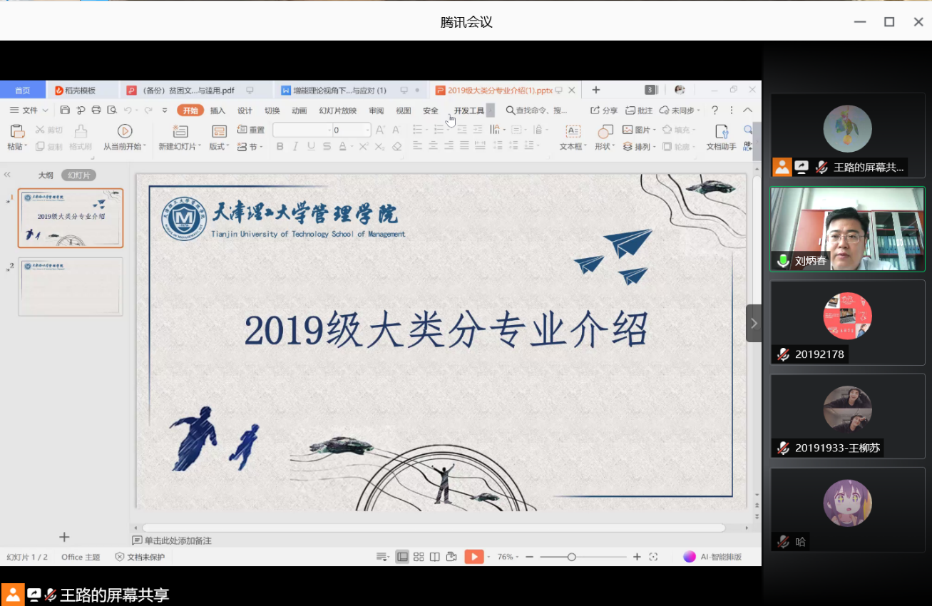 为推动学院学科建设,激发学生学习的主动性、自觉性和创造性,充分体现“加强基础、淡化专业、因材施教、特色培养”的指导思想,管理学院于8月9日召开2019级大类分专业线上宣讲会,覆盖2019级工商管理类及管理科学与工程类专业500余名学生,旨在为面临大类分专业的学生提供专业学习与发展方面的建议与指导。